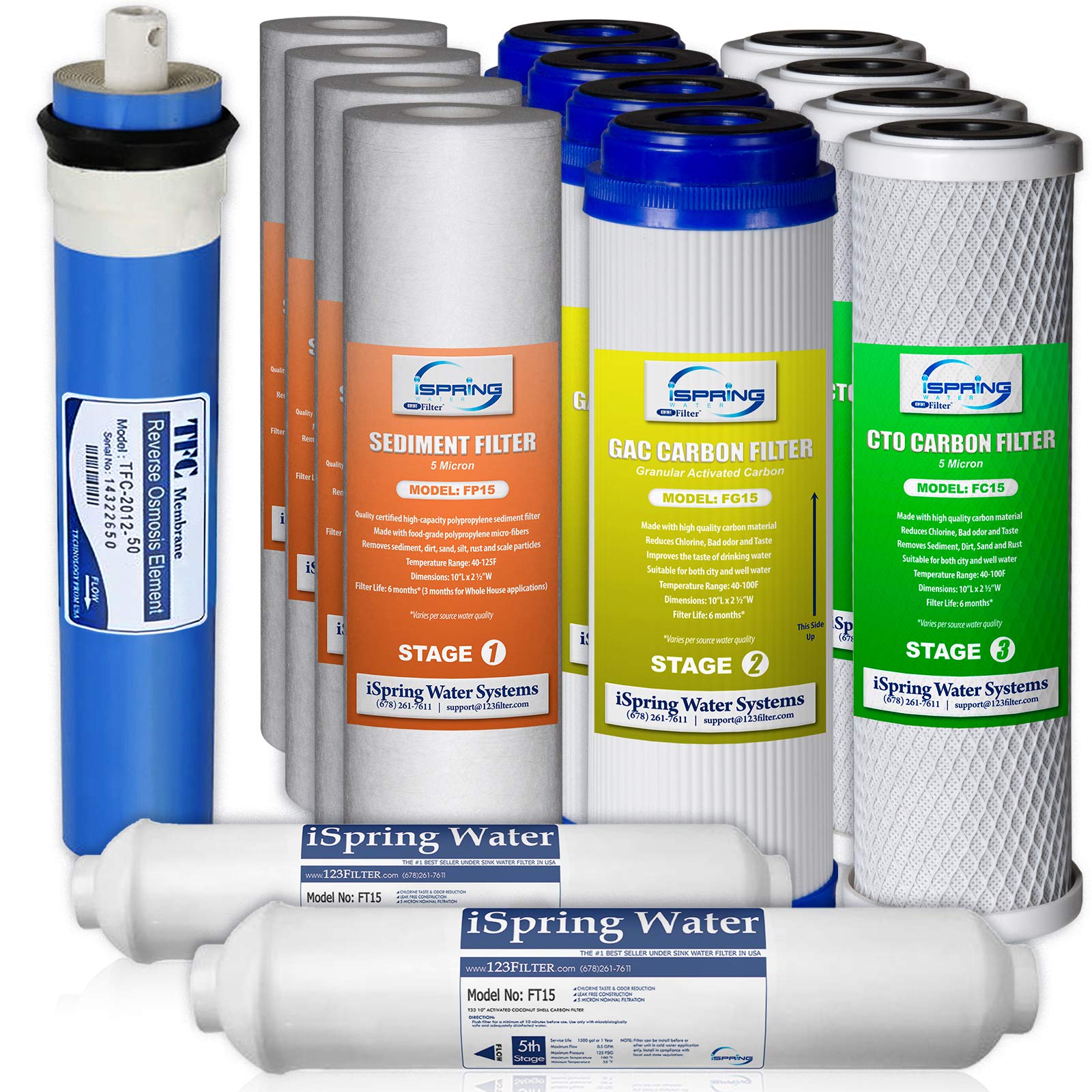 iSpring F15-50 2年交換用水フィルターカートリッジパックセット 標準5段階逆浸透ROシステム用 15ピース